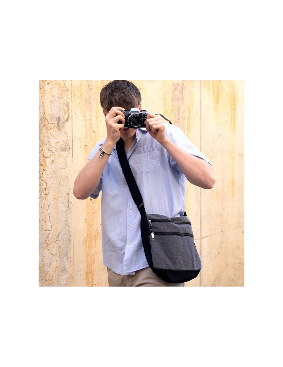 Té una butxaca principal folrada (30x25cm) més relleu de 12cm a la base. Dues butxaques extra a la part davantera de 30x12cm cadascuna. I un altre interior de 30x13cm. Totes 4 amb cremallera.
