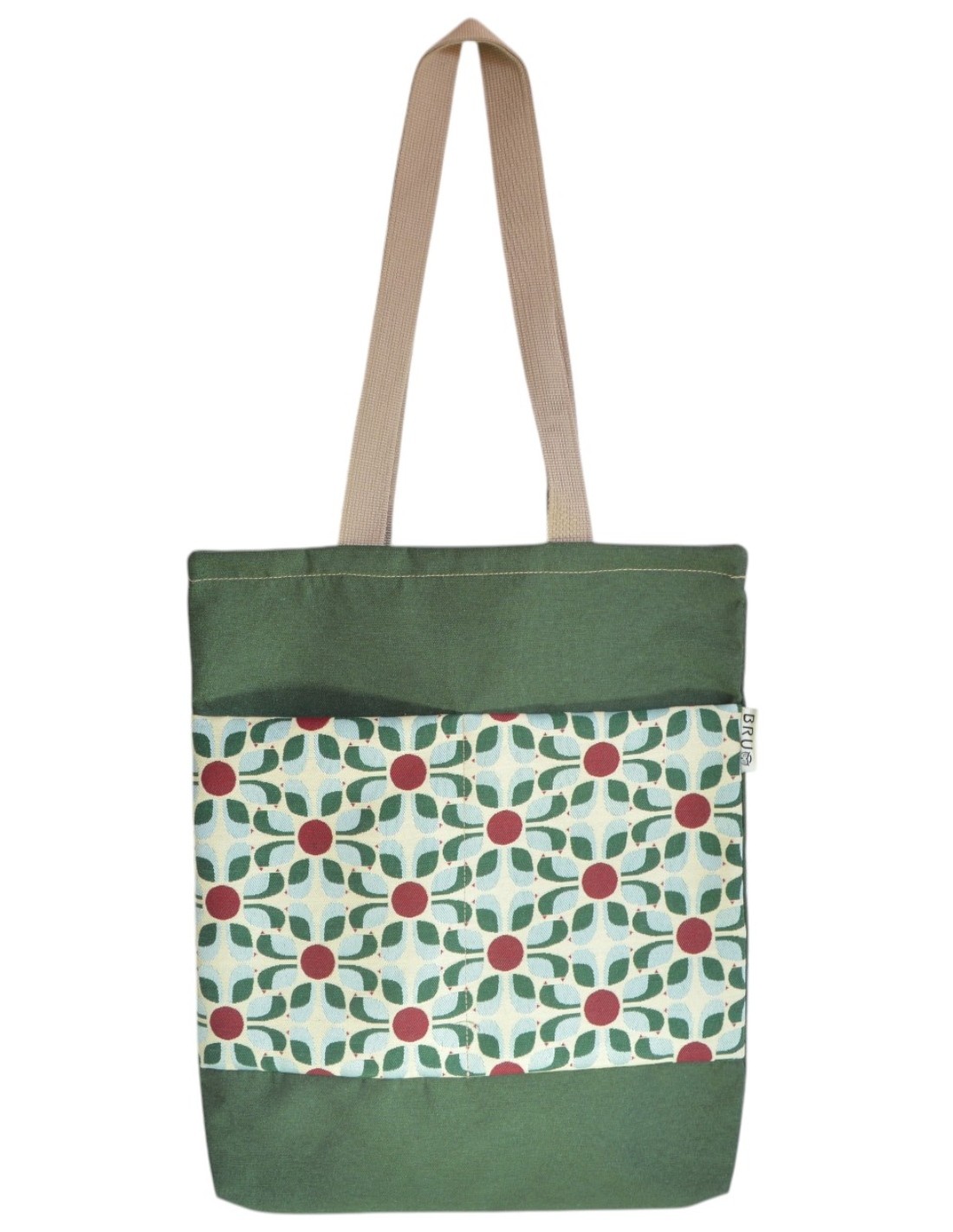 Tote bag amb butxaques "flores" verd – CHIPRE