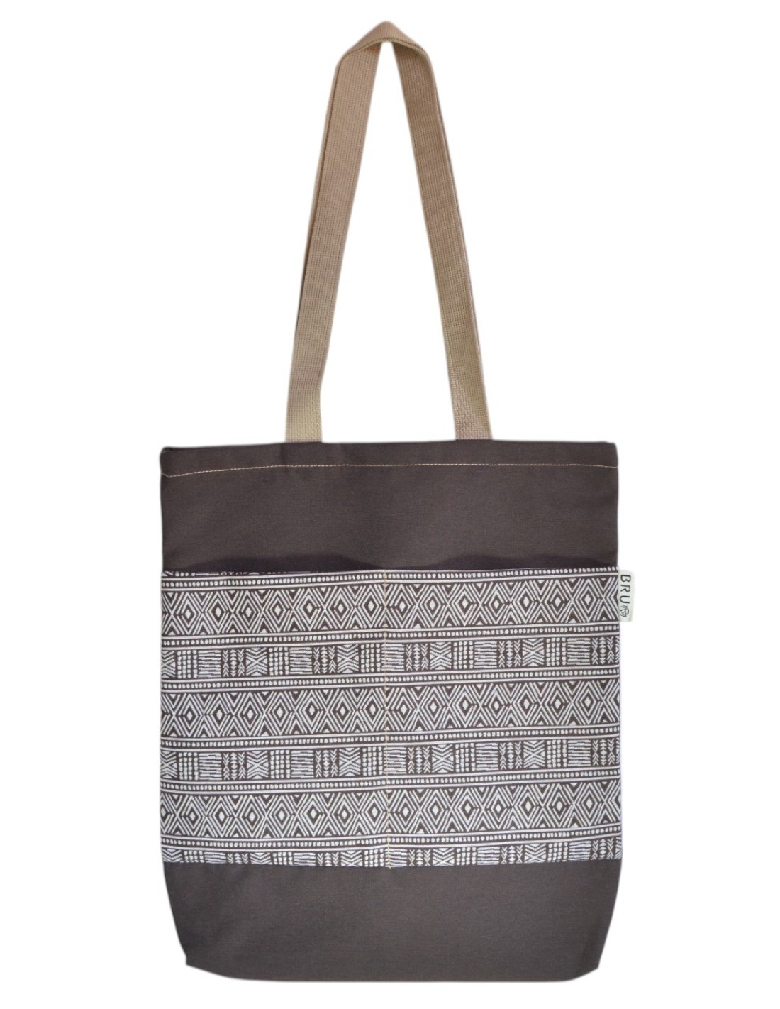 Tote bag amb butxaques "etnic" marró – CHIPRE