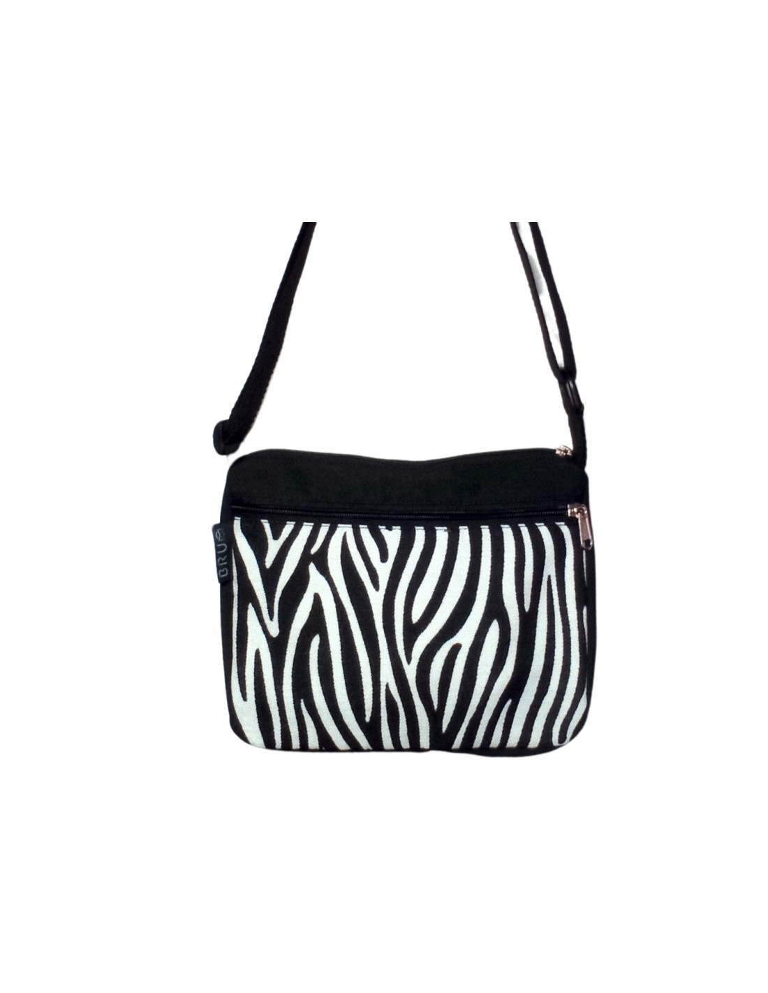 Wide black and white Zebra design bag with four pockets, Creta model.