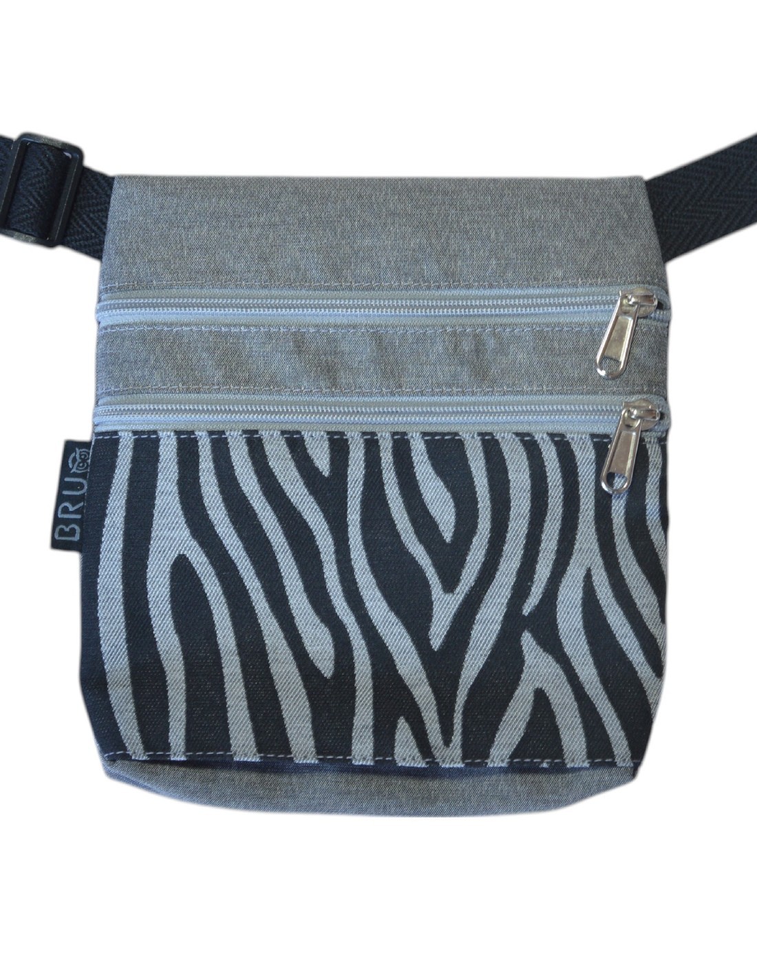 Grey zebra jacquard fabric belt bag with two zip pockets – KAUAI