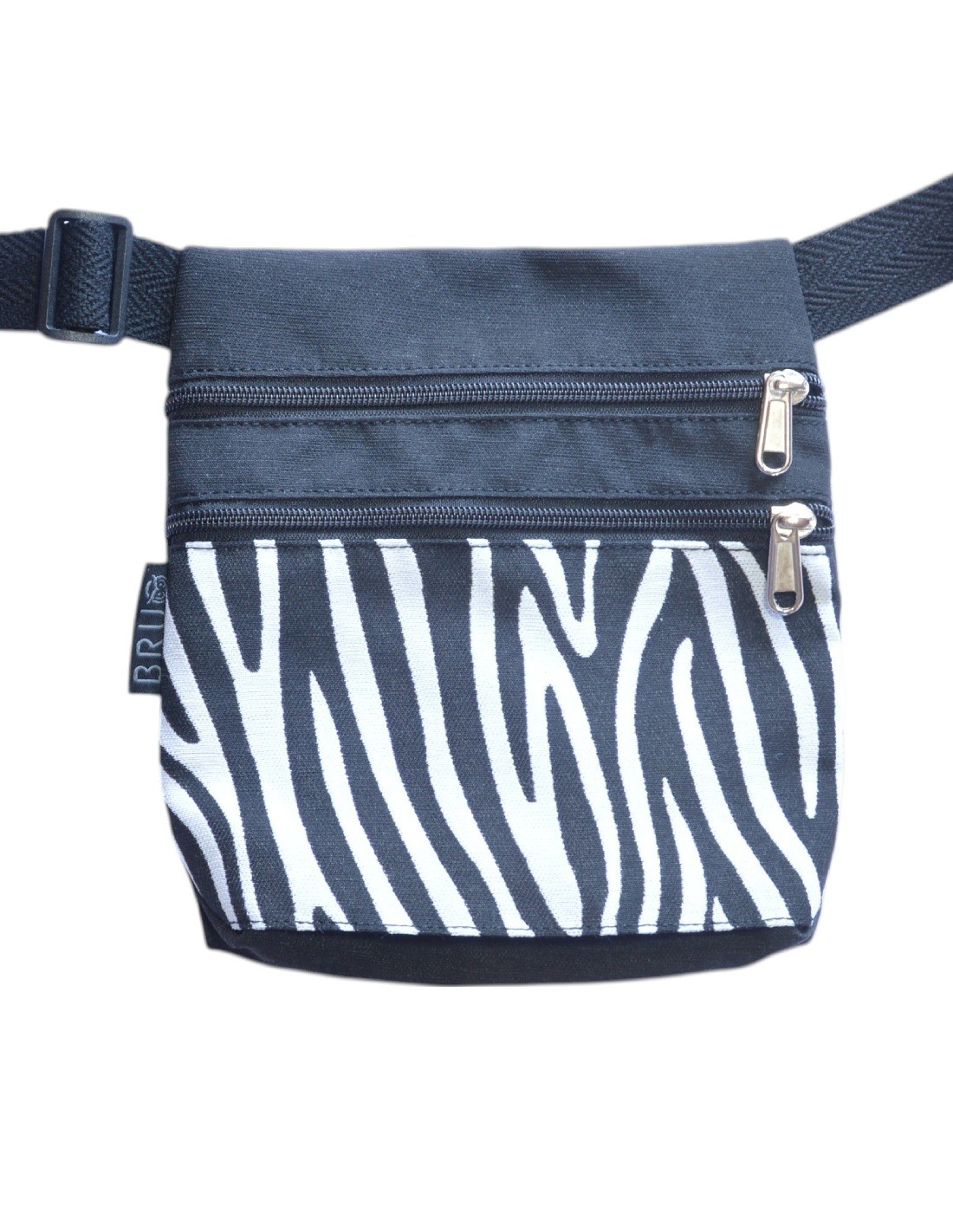 Black zebra jacquard fabric belt bag with two zip pockets – KAUAI