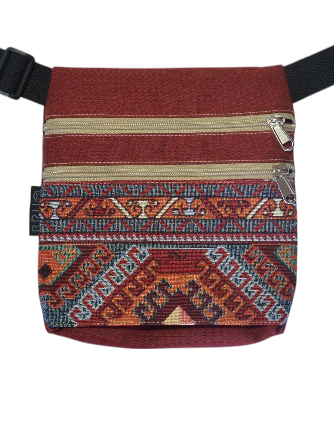 Jacquard fabric belt bag with two zip pockets "abanik" red – KAUAI