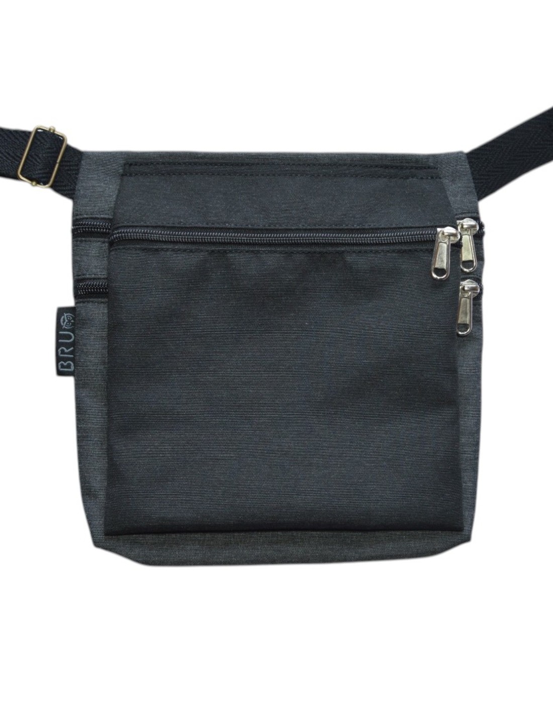 Double belt bag with three pockets, black grey – PUKAPUKA