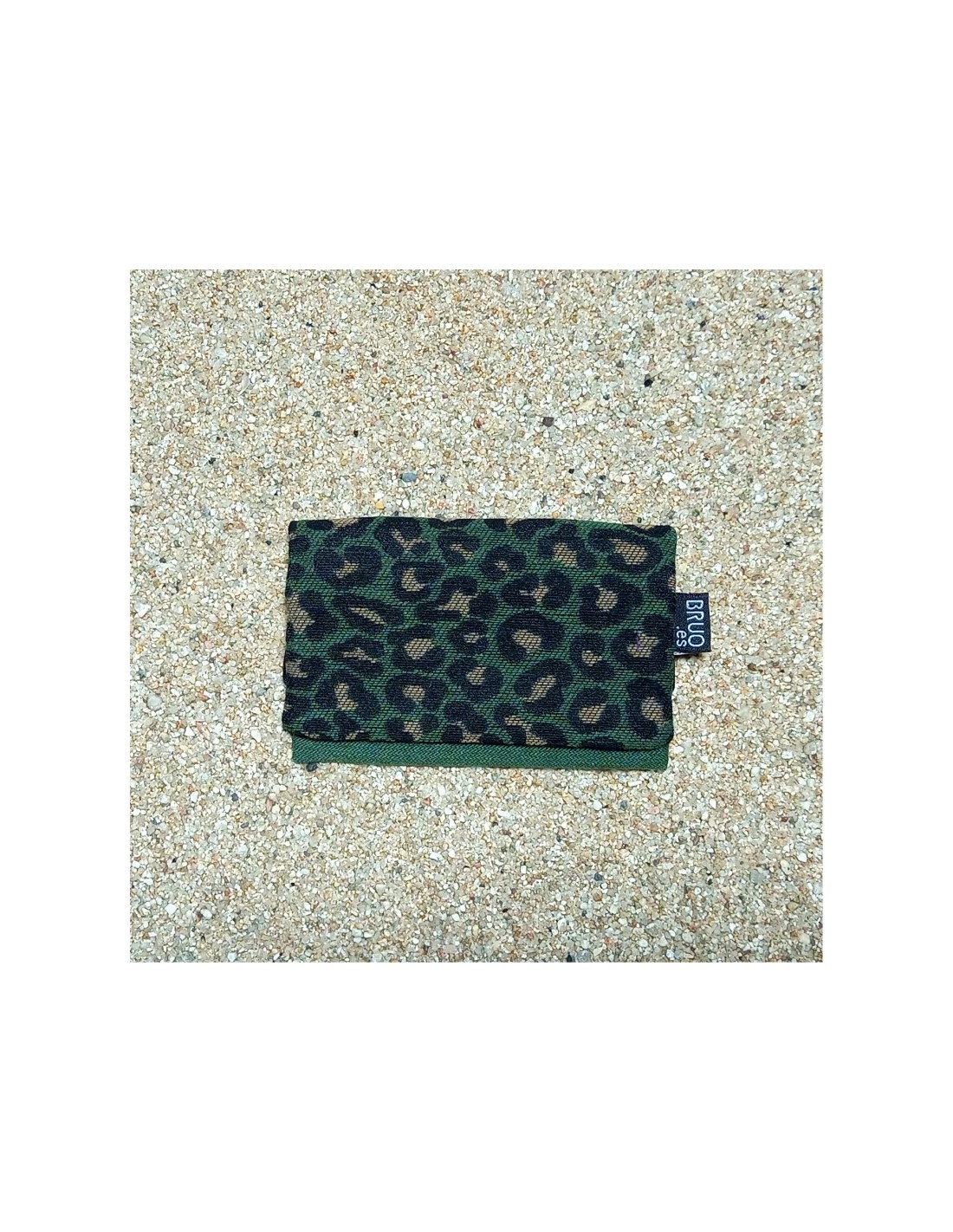 Guadalupe card holder & coin purse. Khaki leopard, measures 12x8.5 cm.