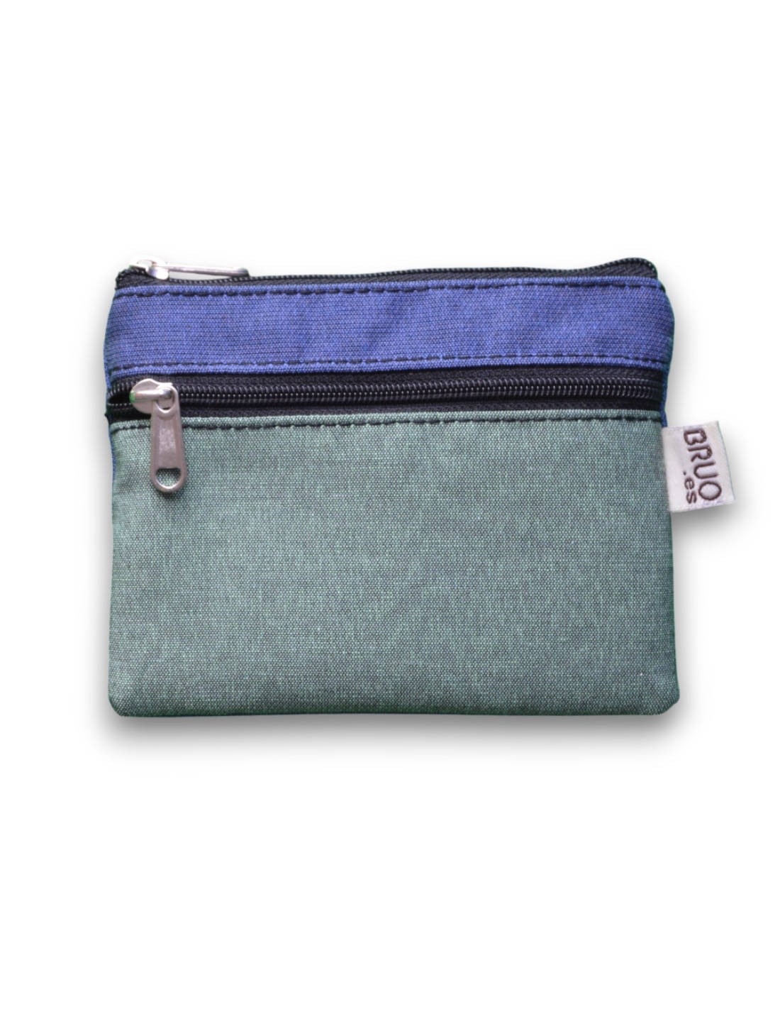 It features two lined zip pockets —one on top and one on the front— ideal for keeping coins, bills, cards or small items well organized and within reach.