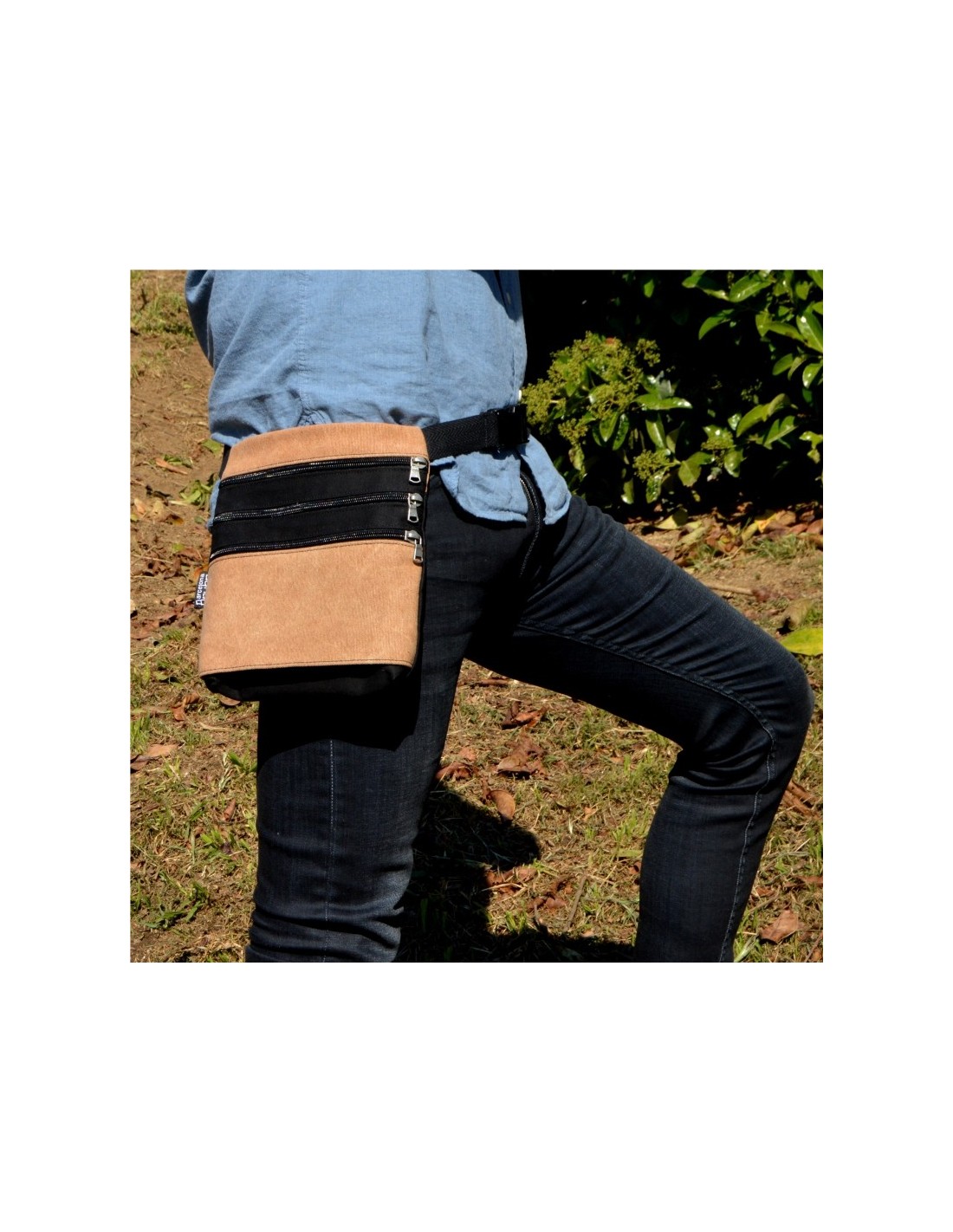 Beige fanny pack 3 pockets 100% Cotton, handmade in Barcelona.