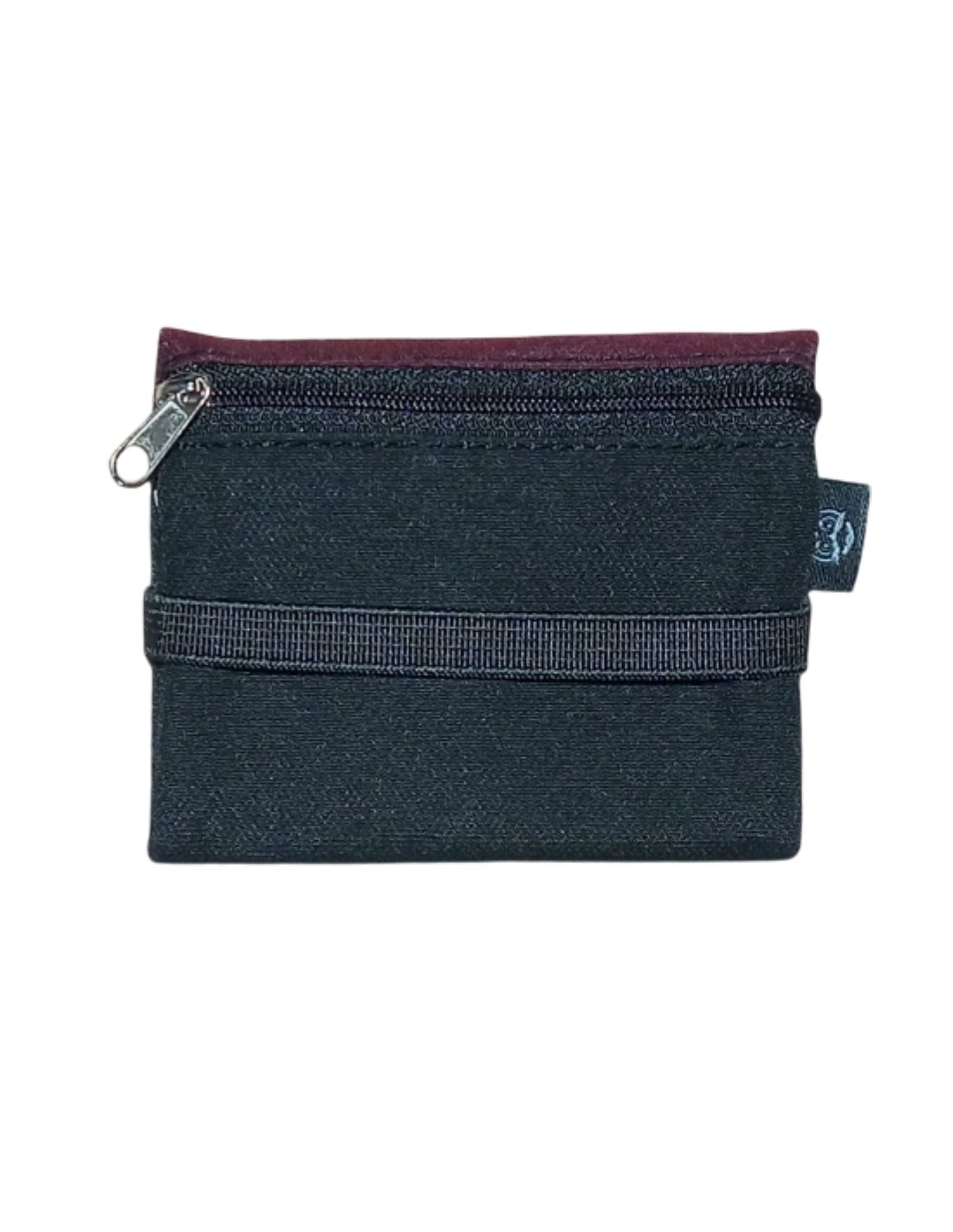 It has an exterior zipper pocket, ideal for coins. Its interior has three compartments for cards and one for bills.