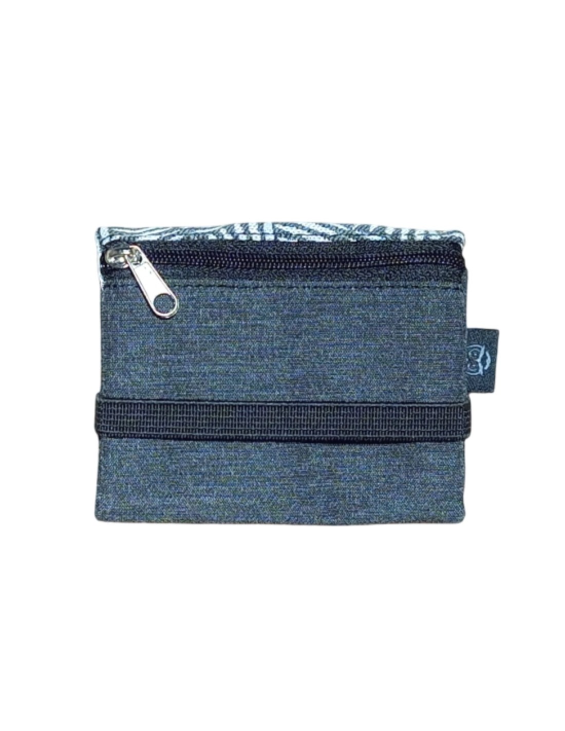 It has an exterior zipper pocket, ideal for coins. Its interior has three compartments for cards and one for bills.