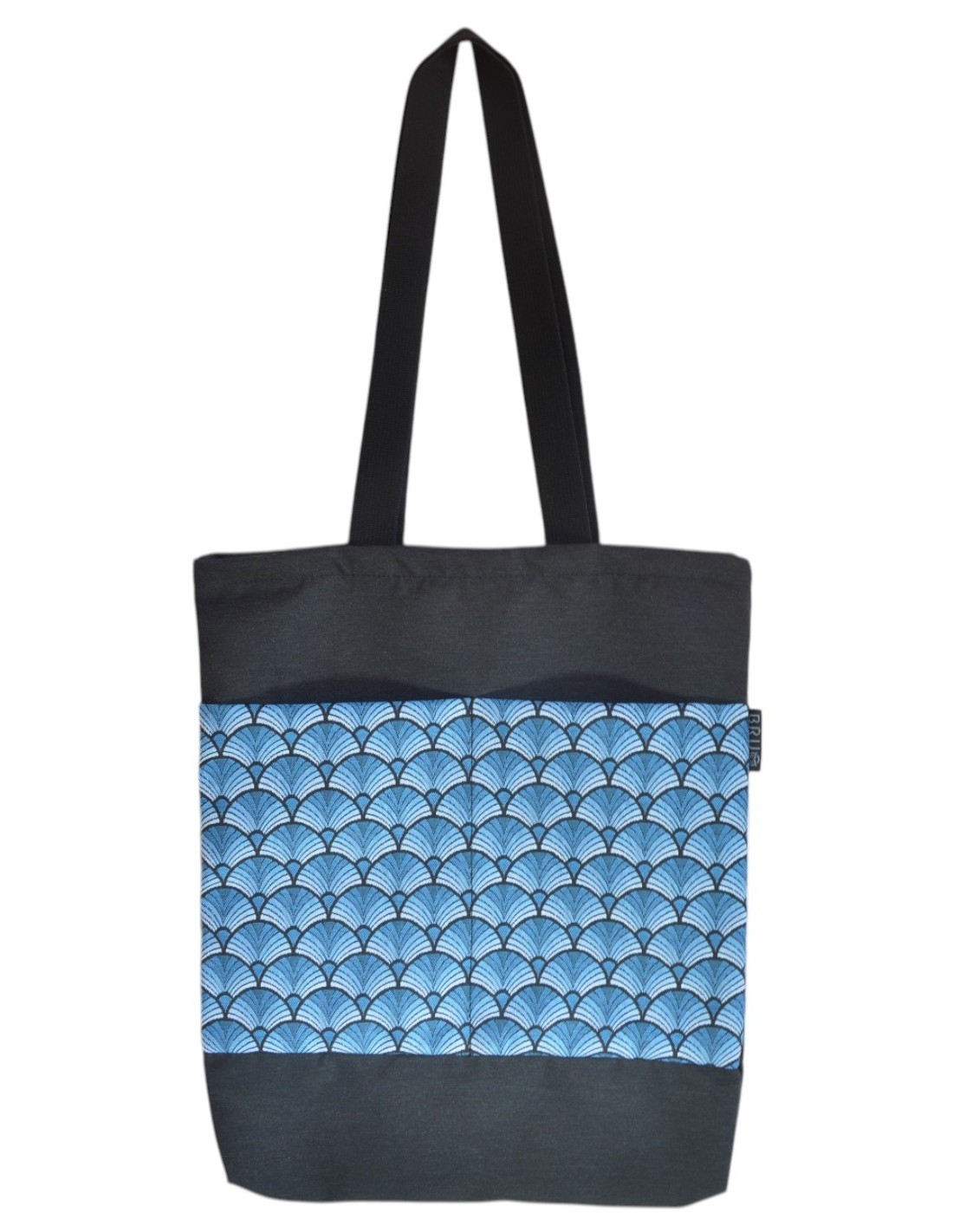 Tote bag con bolsillos abanicos azul, negra - CHIPRE