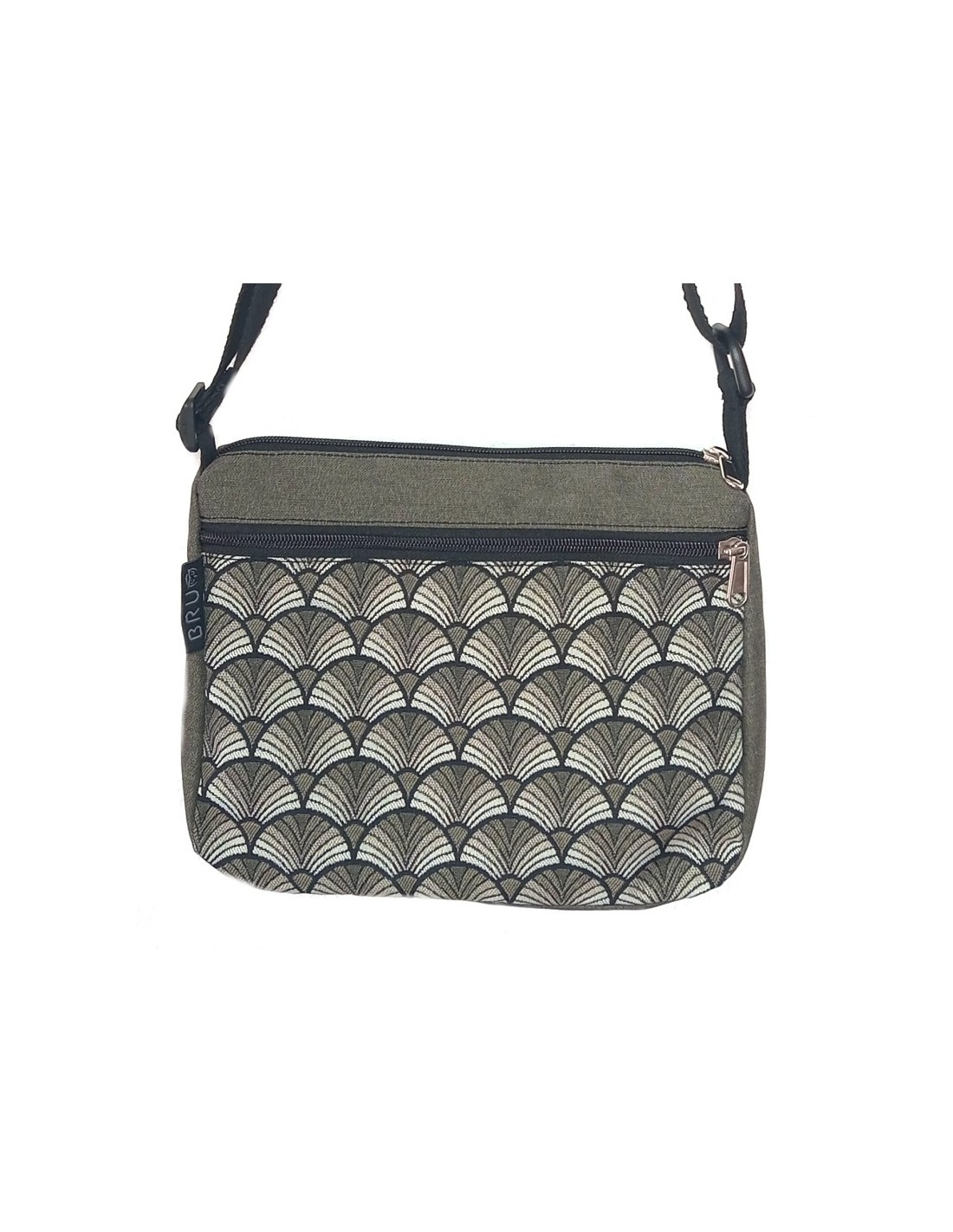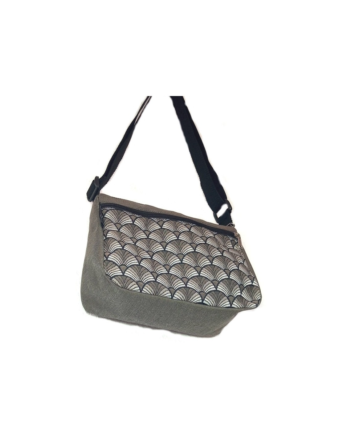 Sac á main ( bandoulière ) large, éventail taupe à 4 poches, modèle Crète.
