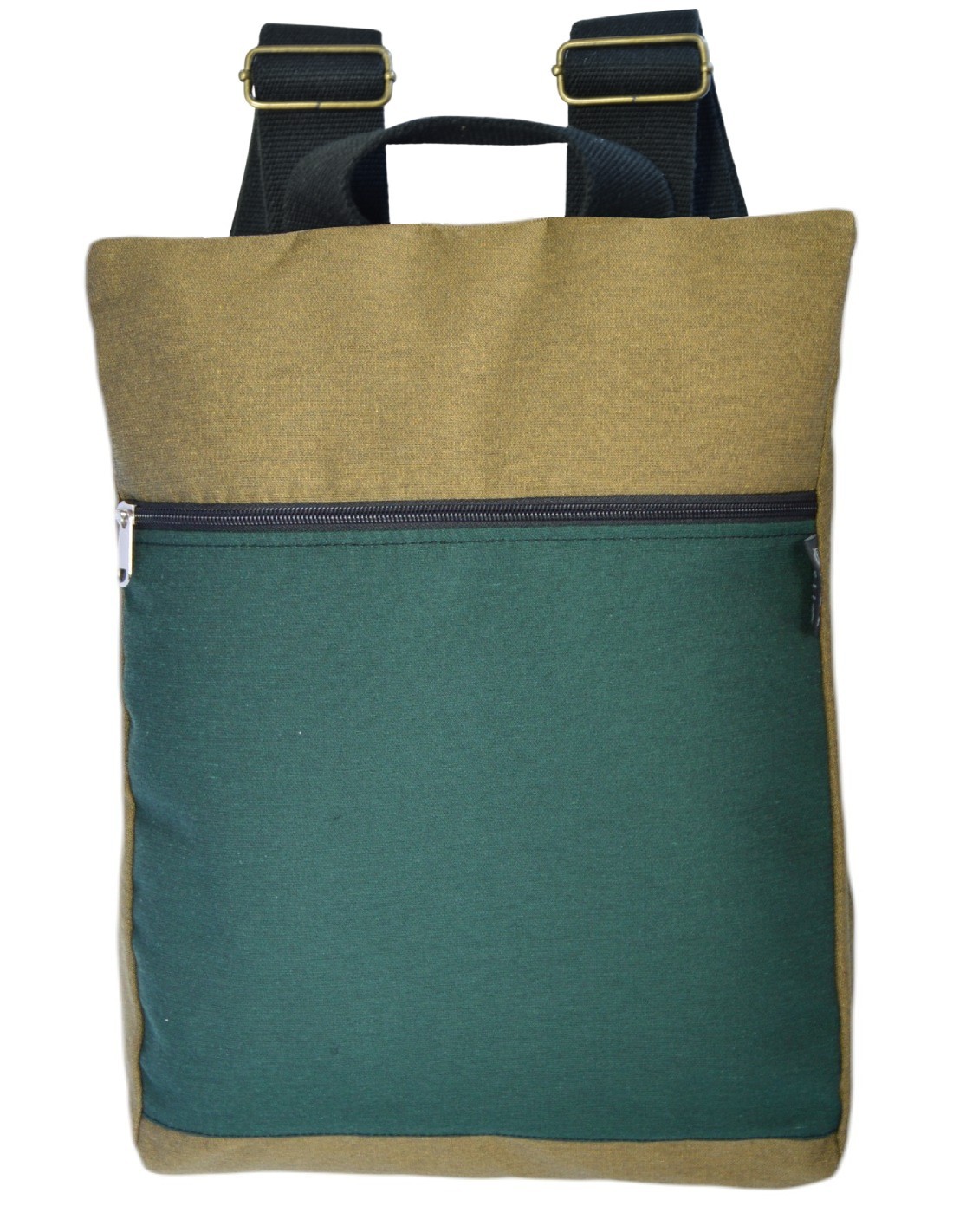 Sac à dos en tissu jacquard antivol, vert moutarde, 3 poches – JAVA