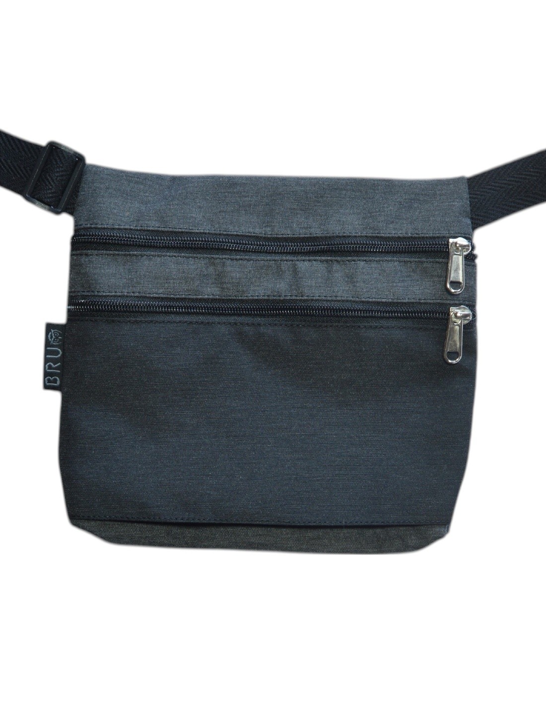 Sac ceinture en tissu noir gris uni avec trois poches – PASCUA