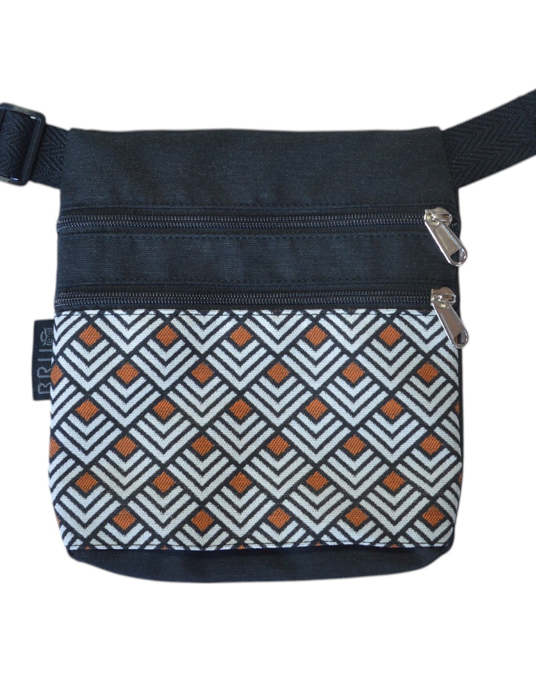 Banane en tissu jacquard "rombos" orange avec deux poches - KAUAI