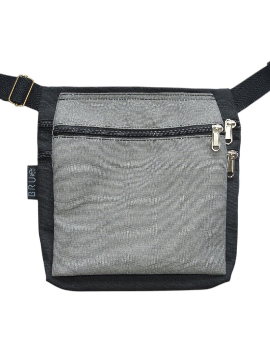 Sac banane double avec trois poches gris clair noire – PUKAPUKA