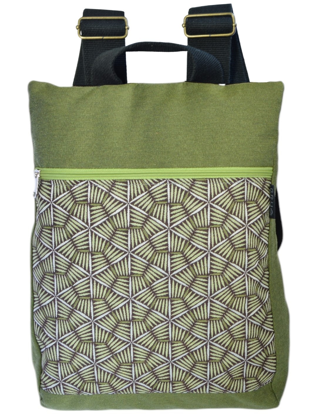 Sac à dos en tissu jacquard antivol, "pali" vert, 3 poches – JAVA