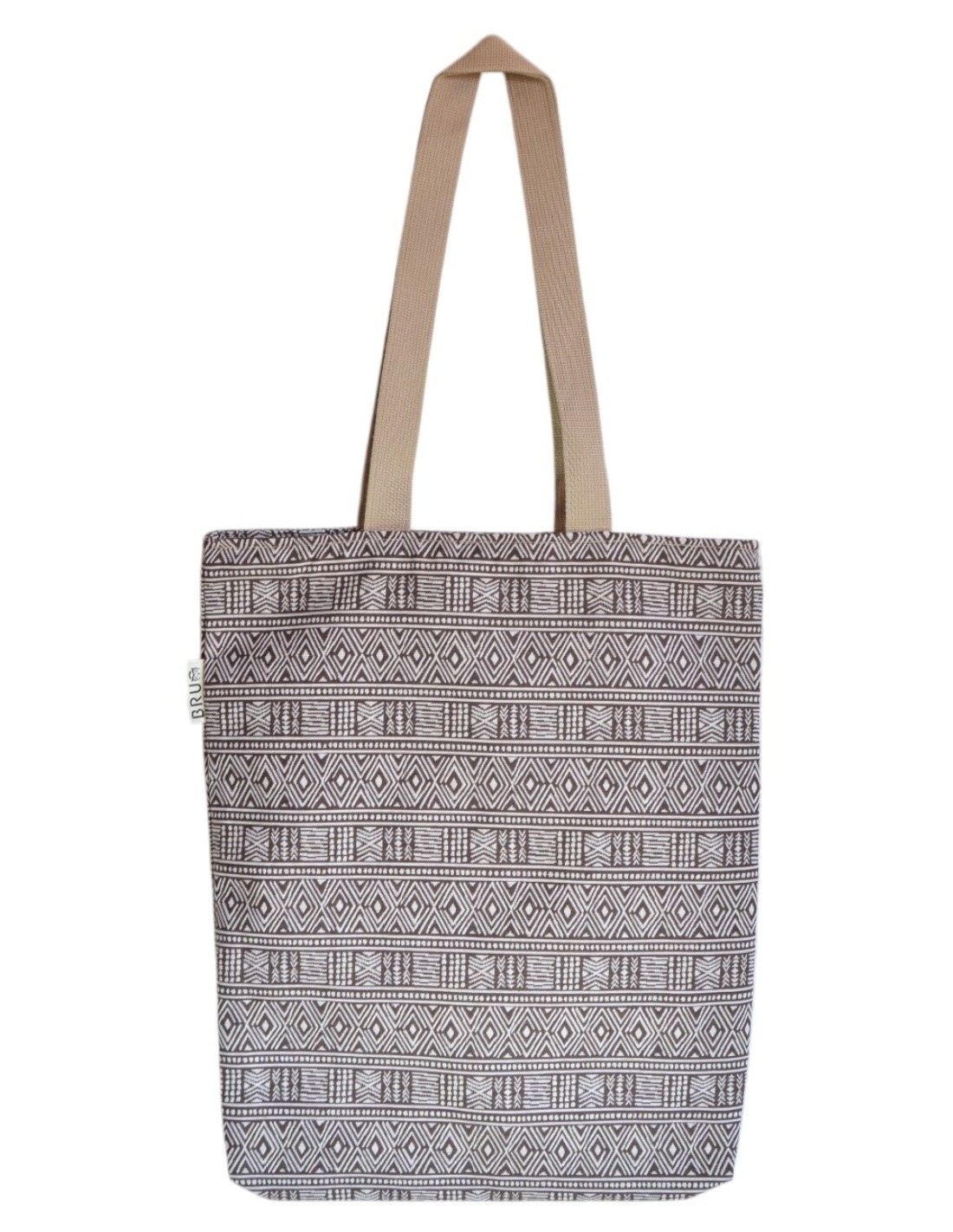 Tote bag en tissu jacquard "etnic" marron – PATMOS